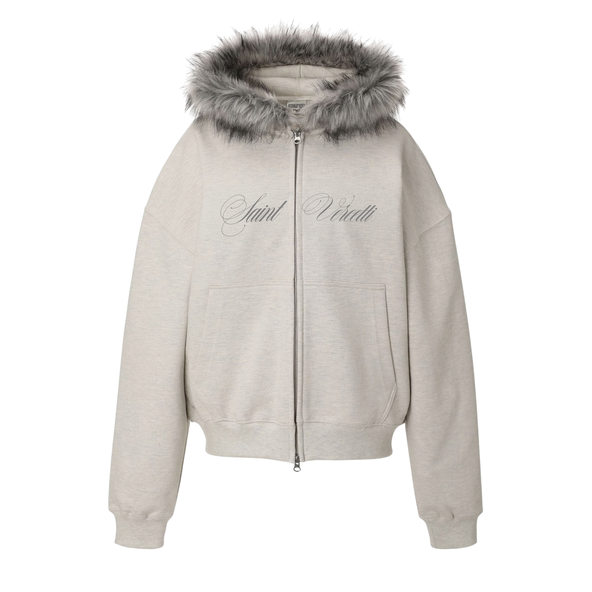 LOS VERC CURSIVE FAUX FUR ZIP HOODIE GREY